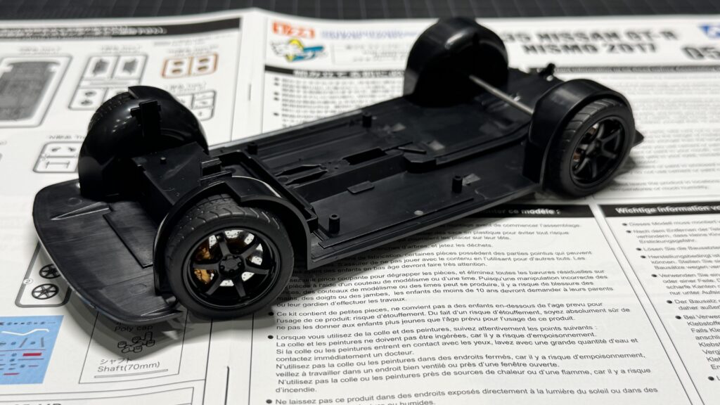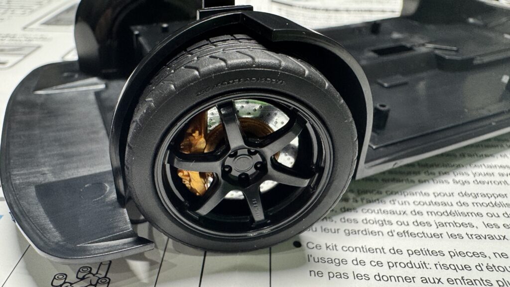 車高の調整はできませんが、組み上がると実車さながらの足回りがしっかり再現されていて、見た目の完成度も抜群です。
