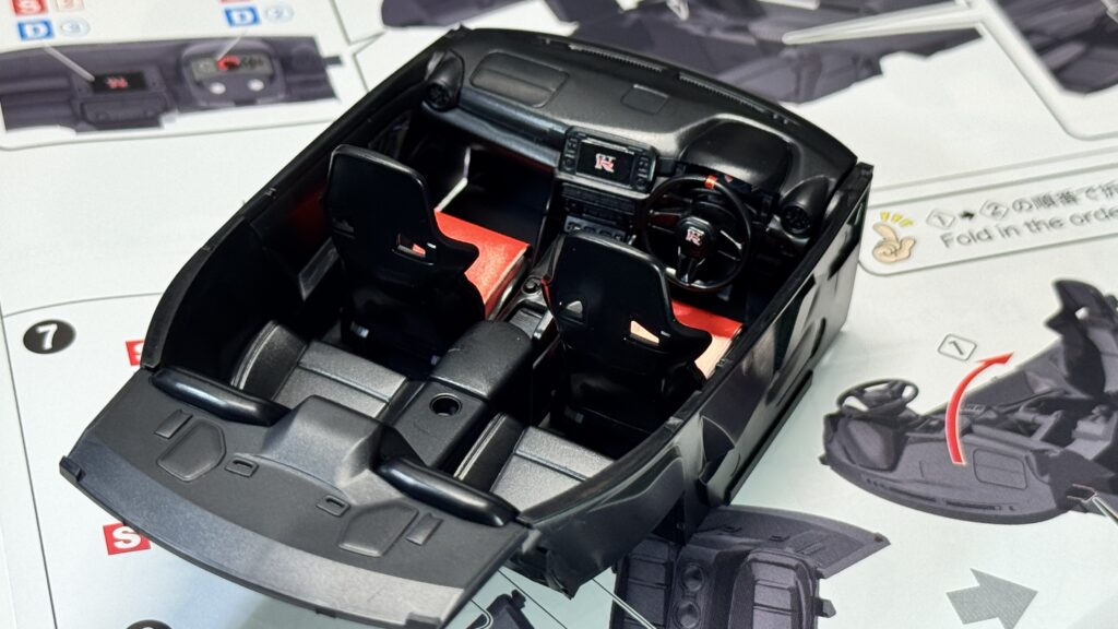 一体成型された室内パーツを、パチンと合わせるだけで形になります。