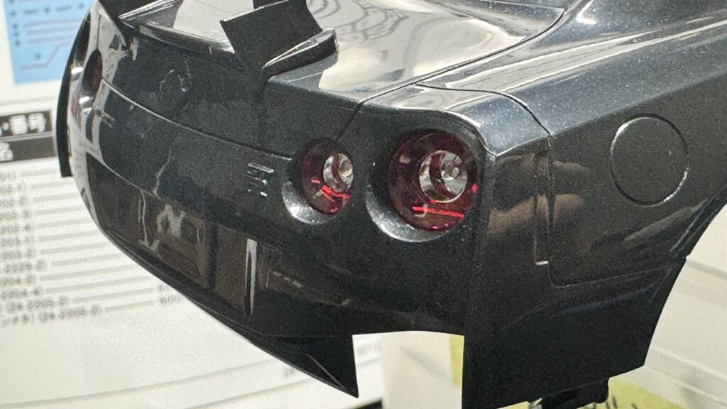 ヘッドライトやテールランプは、リフレクターとクリアパーツが別になっていて、しかもクリアパーツにはあらかじめ着色済み。