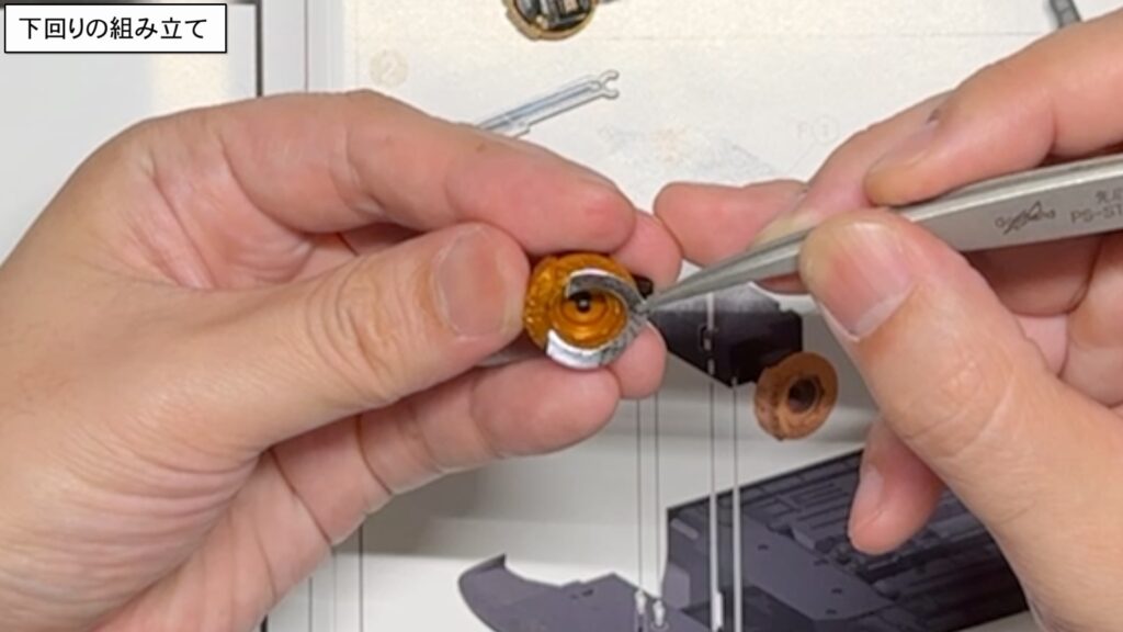 ブレーキディスクと車軸のパーツを組み合わせていきましょう。