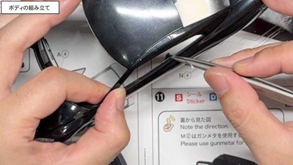 ハンドルを組み立てたら、ピンセットを使ってシールを貼っていきます。