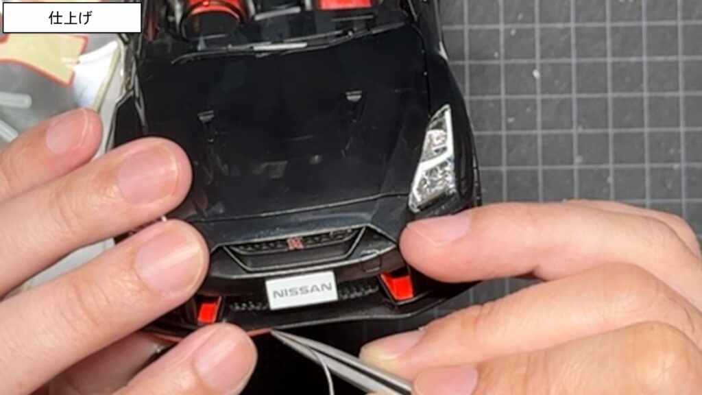 エンブレムやアクセントラインを丁寧に貼り込んでいきます。