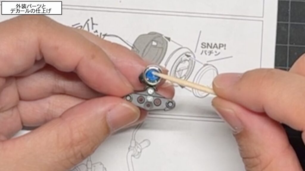 メーターケースの質感を再現しつつ、デカールの保護もしておきます。