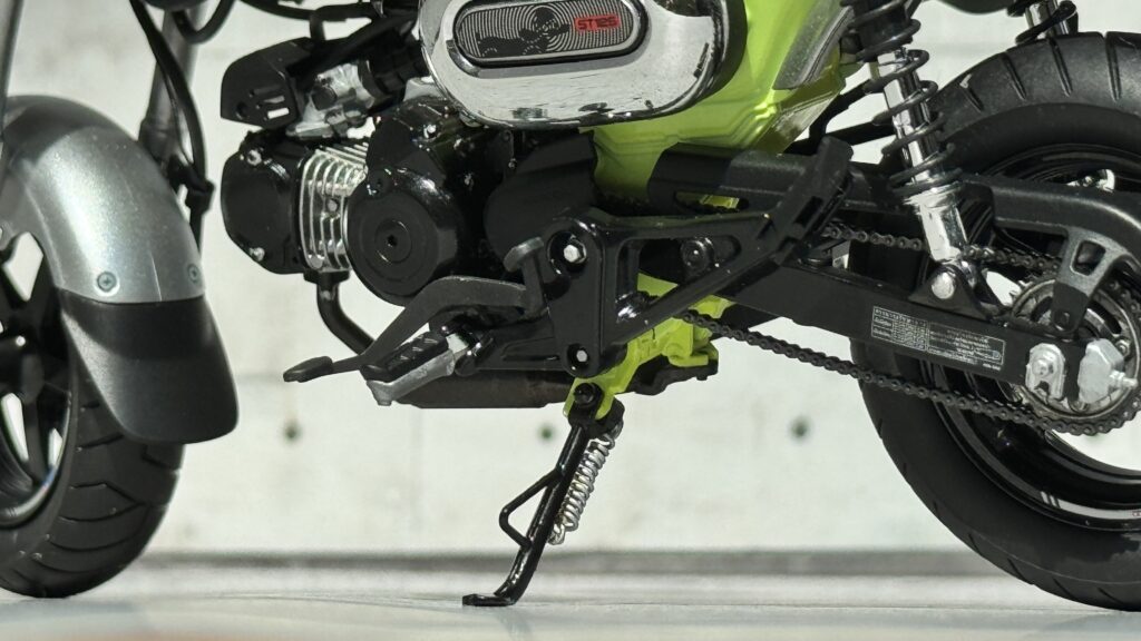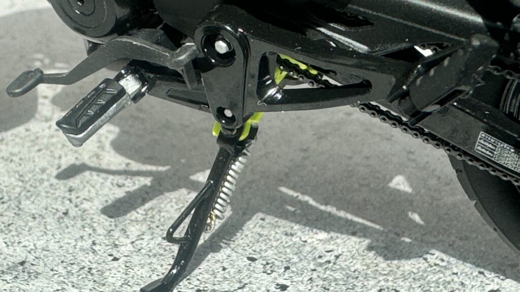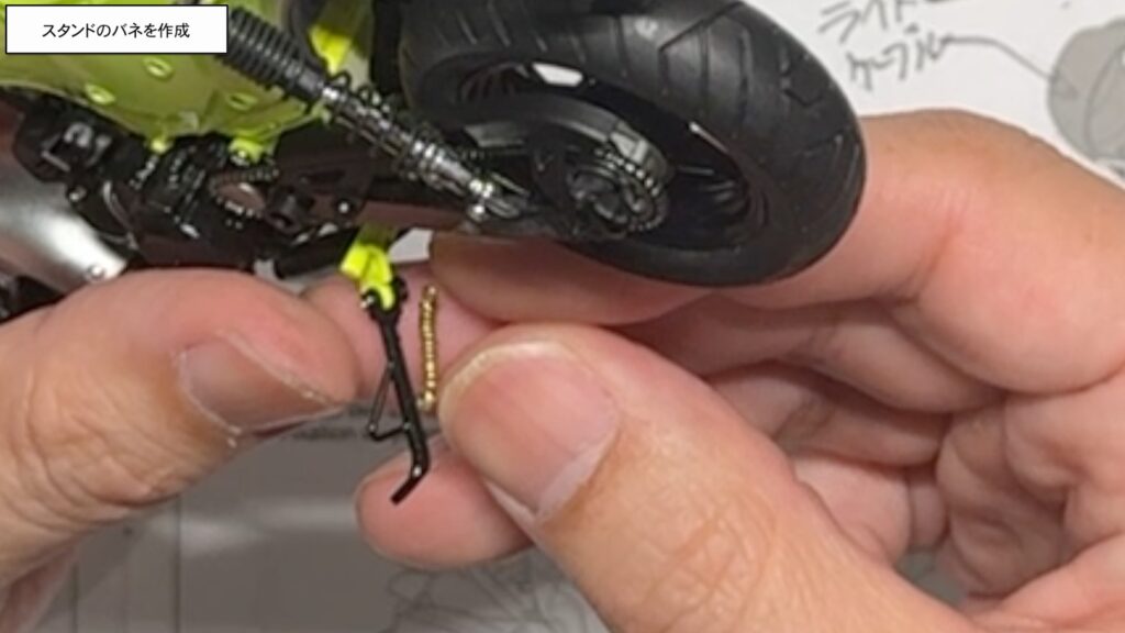 実車のサイドスタンドには必ずバネがありますが、プラモデルでは省略されていることが多いので、ここをしっかり再現していきます。
