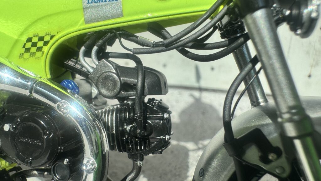 特に、以前から挑戦してみたかったケーブルのディテールアップと、サイドスタンドのスプリング工作にもトライしています。