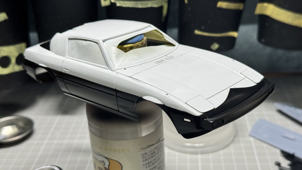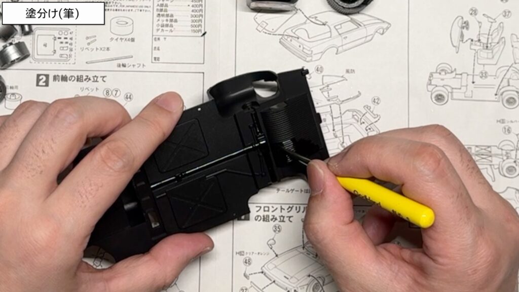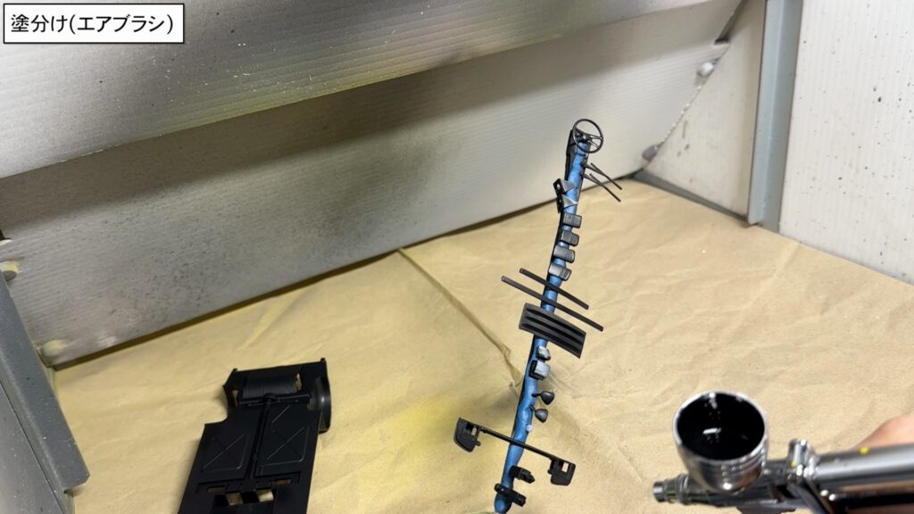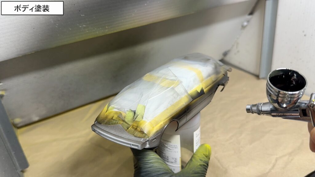 あらかじめエアブラシでエヴォブラックを吹いているので、
