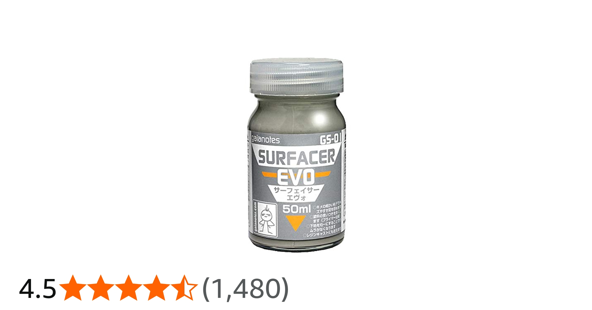 続いて、本塗装をする前の下地としてガイアノーツのサーフェイサーエヴォ(GS-01)を、ボディパーツをはじめ、成形色違いで同じ塗料を使いたいパーツの下地色合わせとしても吹いていきます