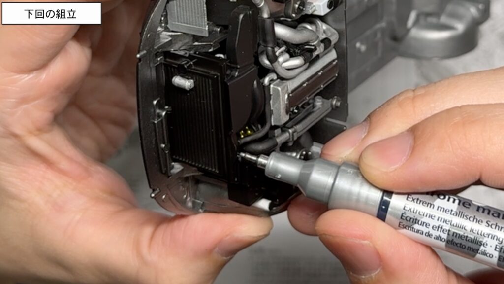 ネジの頭などは4アーティストマーカーのシルバーでパキッと際立たせました。