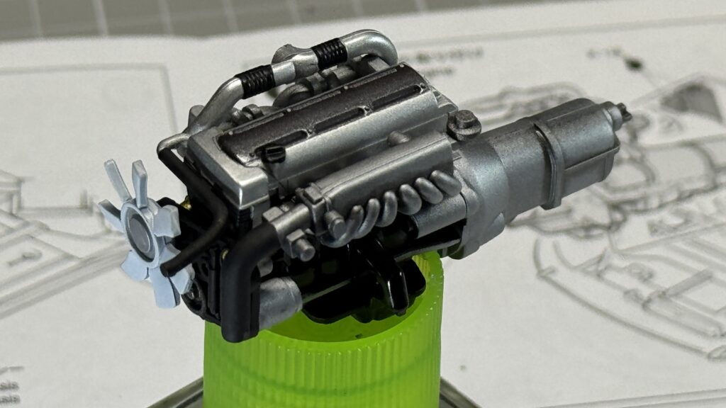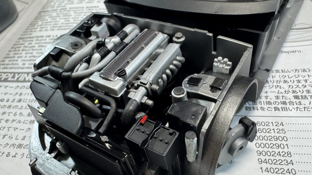 エンジンもパッケージングされたパーツを塗装して組むだけで、これほどまでにリアルな情景が立ち上がります。