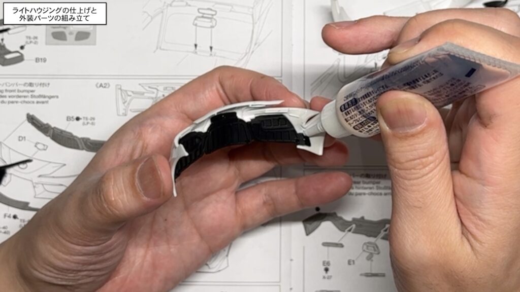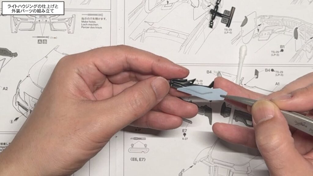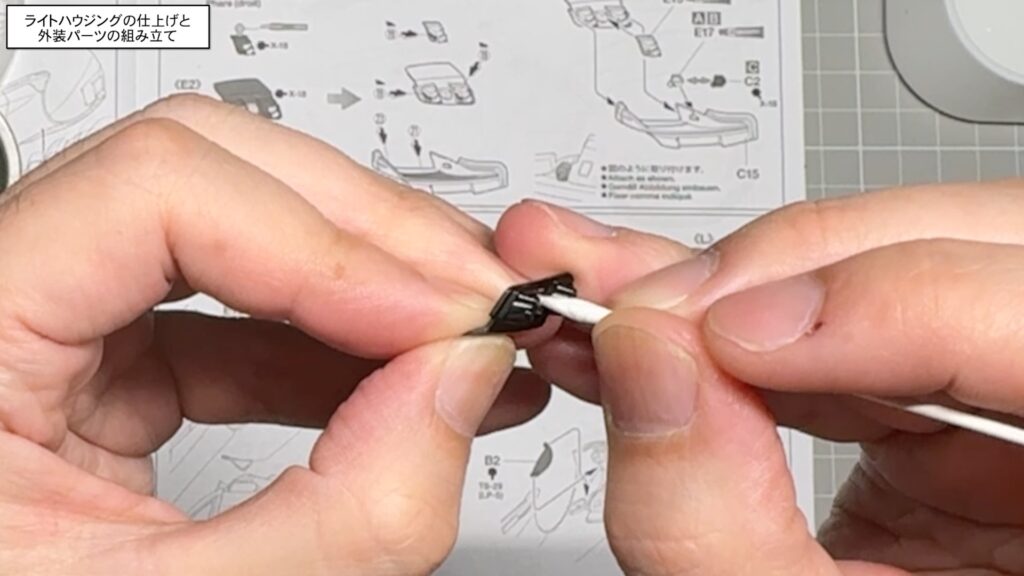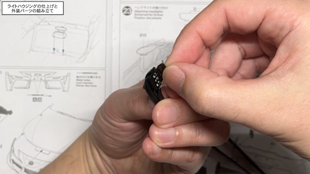 ライトハウジングの仕上げと外装パーツの組み立て
