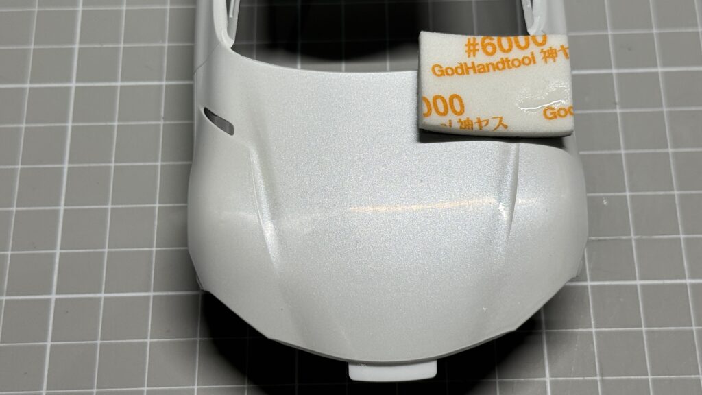 完全に乾いたら、2000番のペーパーヤスリで表面を軽く整えておきます。
