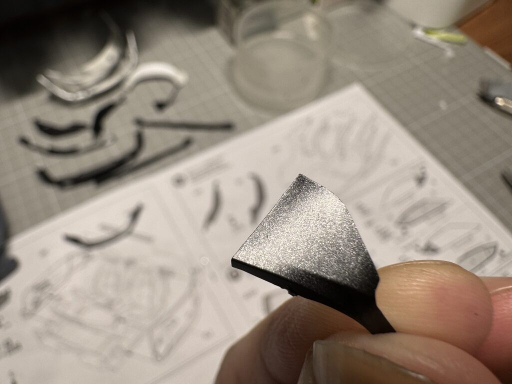 もっとカボらせたい時はシルバーでもいいかもしれませんが、今回はあまり主張しすぎないカーボン感を出したかったのでガンメタを選んで正解でした。