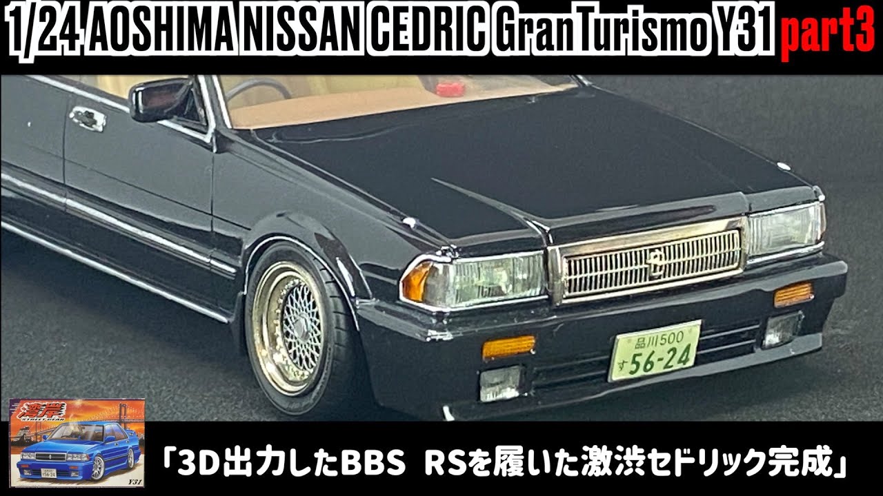 今回の動画はアオシマ製Y31セドリックの制作で、メッキモールの表現から完成までをお届け致します
